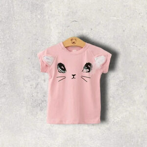 This adorable Pink t-shirt has detailed cat eyes and whiskers, 3D cat ears with sparkles and a little tule bow on one ear. The tutu has a sturdy elastic waistband, layers of tule, an underskirt, and beautiful 3D butterflies with little pearls for the body. This is an absolutely adorable set and would be perfect for every day wear or dressed up for special occasions.