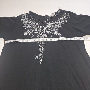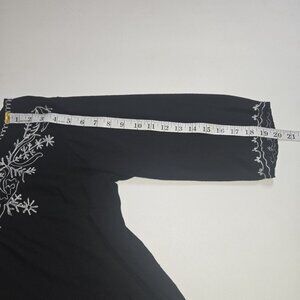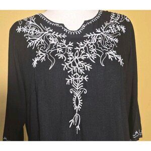 Pink Cattlelac Womens Black White Floral Embroidered 3/4 Sleeve Tunic Rayon We S