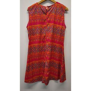 Pink Cattlelac Women's XL Red Aztec Multicolor Patter Sleeveless Dress