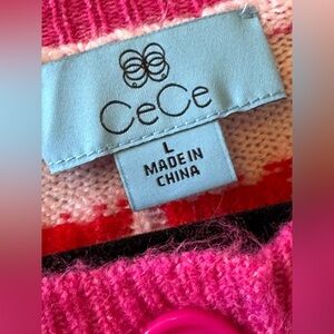 ๐ Pink Cece Hearts and bows cardigan sweater size Large ๐