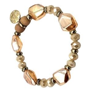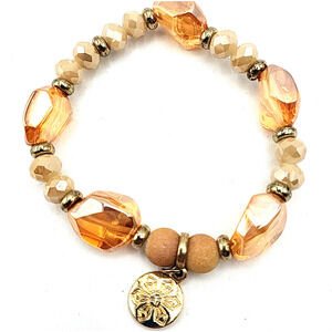 Pink Champagne Stretchy Bracelet with Flower Charm 8"