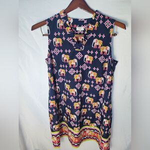 Pink & Chartreuse Elephant Shift Dress Size 10P