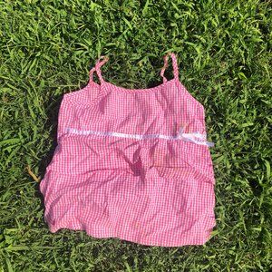 Pink Spaghetti Strap Checkered Blouse with Side Zip