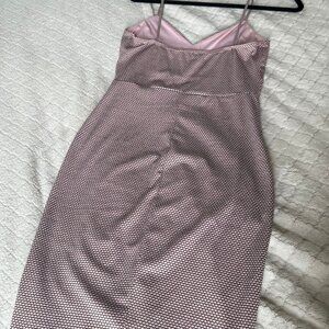 This gorgeous dress is perfect for parties, nights out, or special events! It has a flattering body-con style with spaghetti straps and checkered pattern. The color is a more pink than the picture shows.