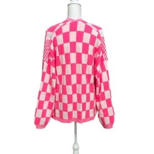 Pink Checkered Sweater Large NWOT
