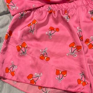 Pink Cherry Print Lace Trim Sleepwear Set
