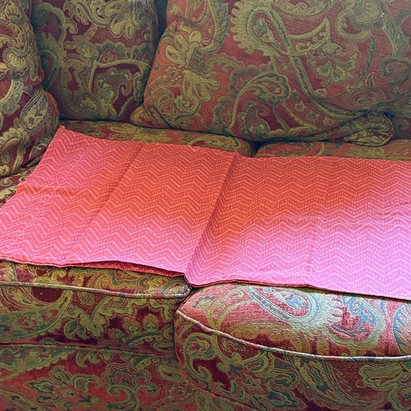 Vibrant pink fabric with a chevron pattern. Perfect for crafts or decor.