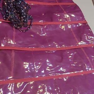 Adorable pink chevron dress organizer . Features a playful desgn that kids will love. Perfect for your little fashionita. It is approximately 34 inches from the top of the shoulder to the hem of the dress and approximately 15.5 inches across at the widest point.