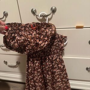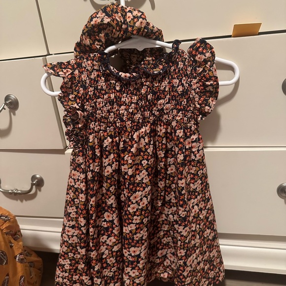 Adorable floral dress with ruffle sleeves. Smocked bodice for comfort. Ideal for casual outings.
