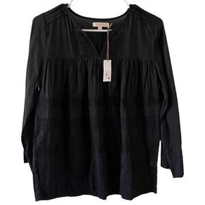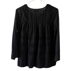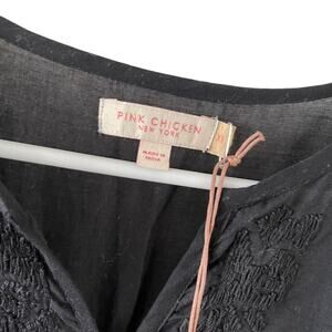 Pink Chicken Mary Embroidered Peasant Blouse Womens XS Caviar Black Boho Chic