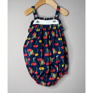 Pink Chicken Navy Blue Cherry Print Baby Renata Bubble Romper Girls 18-24 Mo