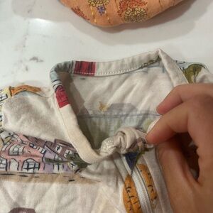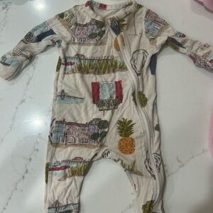 Romper- great condition, orange set- great condition with some fading on top (not noticeable- picture of top with bottoms shows the fading), bamboo pajamas Charleston print. Red peony romper NWOT. All size 3-6 months.
