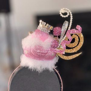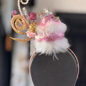 Embracing the festive season, the headband is adorned with pink Christmas-themed accents, creating a fun and lively look that's perfect for Ugly Sweater Contests.