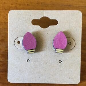 pink Christmas lights earrings, wood studs, hypoallergenic, lights earrings, holiday jewelry, stocking stuffer, festive earrings