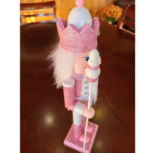 Pink Christmas Nutcracker Soldier Wooden Statue Holiday Decor Xmas Decoration