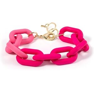 Add a pop of color to your outfit with this vibrant pink chain link bracelet. Perfect for any occasion.