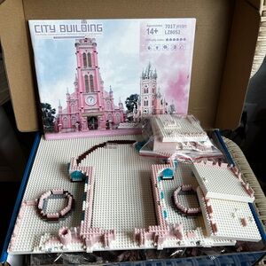 Nano bricks, pink church block set, Tan Dinh cathedral model, micro blocks, architectural building blocks, pink cathedral lego-style, Lego compatible nano bricks, adult building set, modular building kit, gift for Lego lovers, creative hobby set, gothic church model, rare pink city architecture set