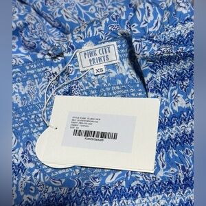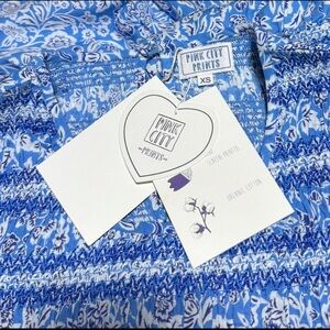 Pink City Prints Isabel Dress XS NWT Ornate Sky Blue Cotton Midi Smocked