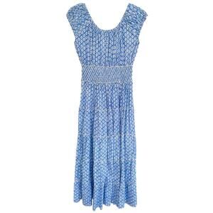 Pink City Prints Rah Rah Blue Tulip Block Smocked Maxi Midi Dress