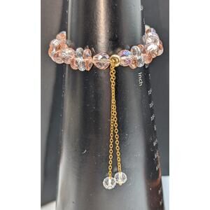 Pink & Clear Crystal Gold Tone Pull Chain Dangle Bracelet. Pre-owned, this bracelet is in excellent condition.