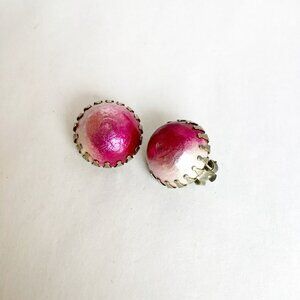 Pink Clip On Earrings Vintage Domed Button Gold Tone Setting Lightweight Clips