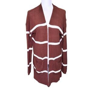 Pink Clover Spice Brown White Striped Cardigan with Pockets. Size Small. 100% acrylic.