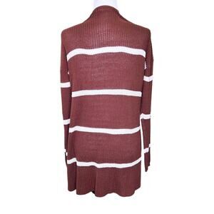 Pink Clover Spice Brown White Striped Cardigan with Pockets