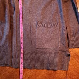 See pics for approximate measurements, features, condition, fabric content, and care instructions. Open cardigan has 2 pockets on the front.