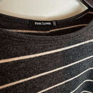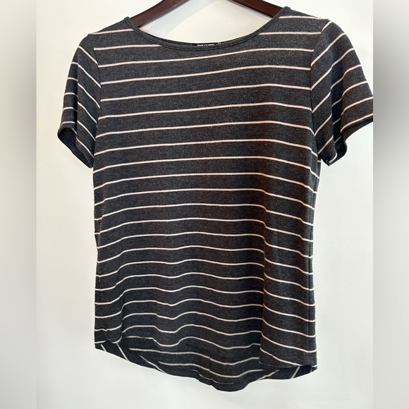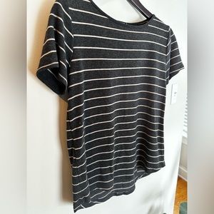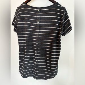 Boutique tee by Pink Clover. Gray and cream stripes. Cute button detail down back. Super soft and falls nicely. Great pre-owned condition.