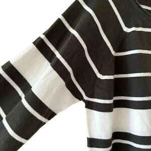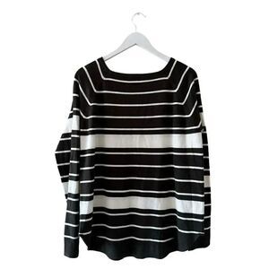 Pink Clover Valencia Curved Ribbed Hem Viscose Blend Quiet Luxury Black White Stripes Boat Neck Long Sleeves Soft Comfy Women’s Essential Top SZ XXL # 1870