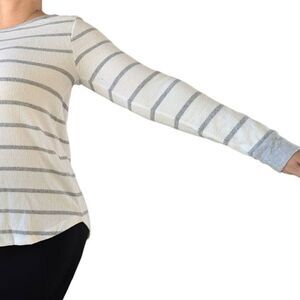 Pink Clover White Gray Striped Flannel Sweater Top Pullover Crew Neck Size L