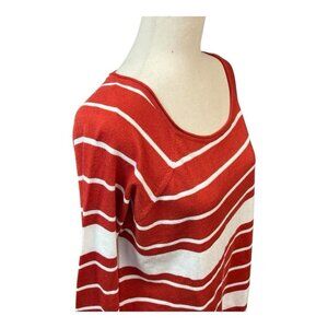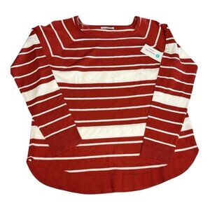 Pink Clover Womens Striped Sweater~Size XXL~Burnt Red White Curved Hem NWT~L5 11