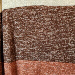 Cozy and stylish Pink Clover women’s long sleeve top in a warm colorblock design featuring oatmeal, cocoa brown, and rust red tones. Soft, lightweight knit perfect for layering in fall and winter.