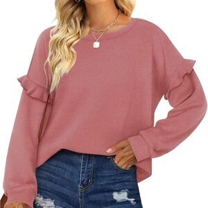 Pink Clover womens top Size XL dark mauve super soft ruffle sleeve pullover NWOT