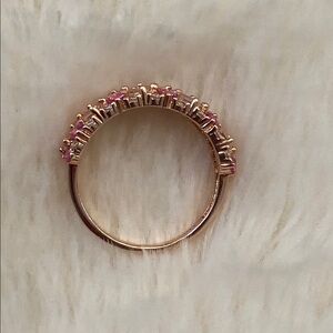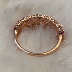 .925 sterling silver rose gold plated band with baguette and round pink and white lab grown stones