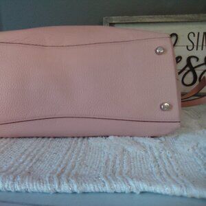 Soft pink leather satchel with handles and strap. Great condition. Width is 13 in and 8.5 in tall. There is one large open pocket inside.