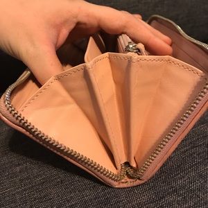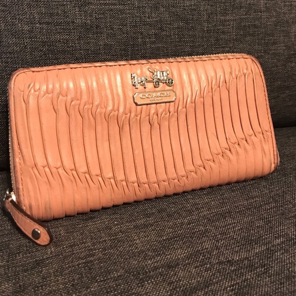 Beautiful pale pink coach wallet! I've used a lot but it is still in good condition and it's sturdy! Loved it.. just got a new wallet and don't need this one anymore.