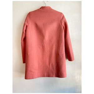 @cmoorthy I wouldn’t say coral pink since there’s no hint of orange. I think the pic is a good image for color - not sure what you would call it. And no stains in the collar. I’ve only worn it a couple of times and it’s been stored in my closet since! It’s been dry cleaned but there are some fabric pilling that shows signs of wear.
