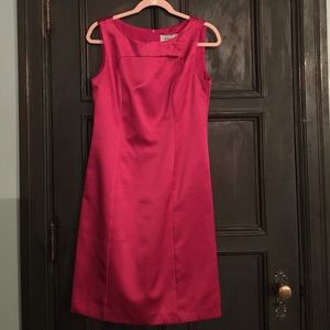 Channel your inner Jackie-O with this gorgeous hot pink cocktail dress. Notice the detail at the neckline. Hits mid-calf