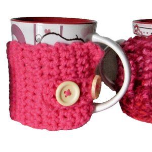 Pink Coffee Mug Cover Keep It Hot Cozy Cup Sleeve Crochet 11" Cozi Tea Drink NWT