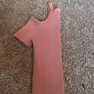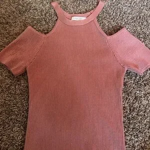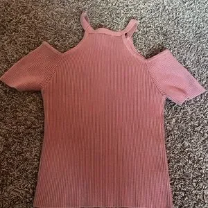 Stylish pink cold shoulder ribbed top. Perfect for casual outings.