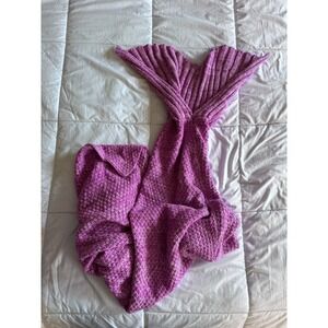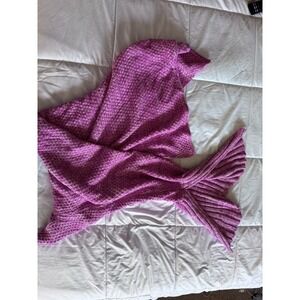 Pink Colorful Mermaid Tail Blanket Crocheted Adult Kids Soft Warm, 6 Ft Long EUC