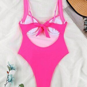Pink Contemporary Women's European Sexy Spliced Color One-Piece Swimsuit