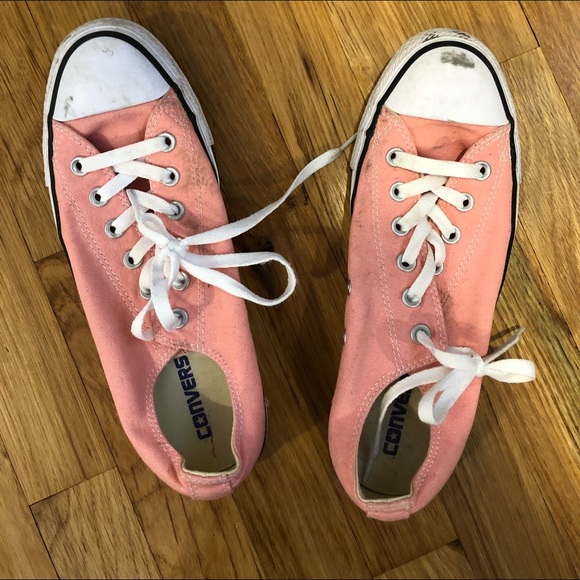 A little bit more coral than pink. Worn only one time (for school spirit event), therefore there are a few scuffs and marks. Other than that good as new