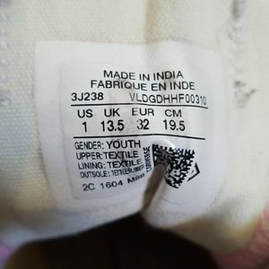 VERY well loved Converse sneakers. Soles are coming out...which would be perfect if you want to use your own. Wouldnt be any big deal to glue them back down if needed. Faded in some spots and some dirt stains. Some gaps as shown in pictures. Would be good play shoes, halloween costume. Or just everyday shoes if you dont mind the wear and tear.