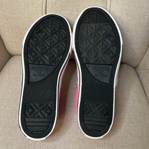 The cutest pink Converses! Excellent condition, very clean. Foldover black tongue with multi colored stars. Size 5 💗