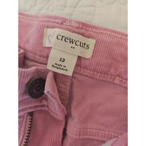 Measurements: 12.5in waist. 33.5in long. 7.5in ankle. Add a pop of color to her wardrobe with these adorable Crewcuts pink corduroy pants in size 12. Featuring a soft, textured finish and sturdy metal button embossed with “CREWCUTS,” these pants blend playful style with quality craftsmanship. Made in Bangladesh, they offer a comfortable fit perfect for school days, weekends, or casual outings.