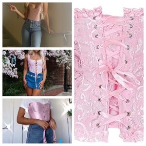 Pink Corset Coquette Romantic Lace Up Soft Girl Top Medium. In new without tags never worn condition. Stock photos are for styling and wear purposes only.