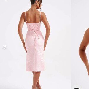 Babyboo Ember Midi Dress - Blush. Size XS. Boned corset bodice, adjustable straps, floral jacquard fabric, thigh-high split. Bought for $100, asking $70. Worn once.