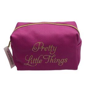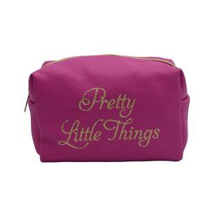 Pink Cosmetic Bag With Pretty Little Things Gold Embroidery Makeup Bag Pouch